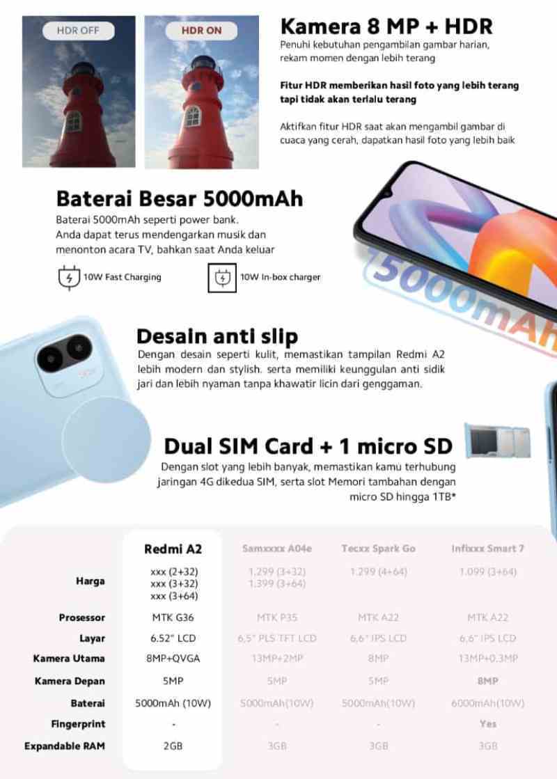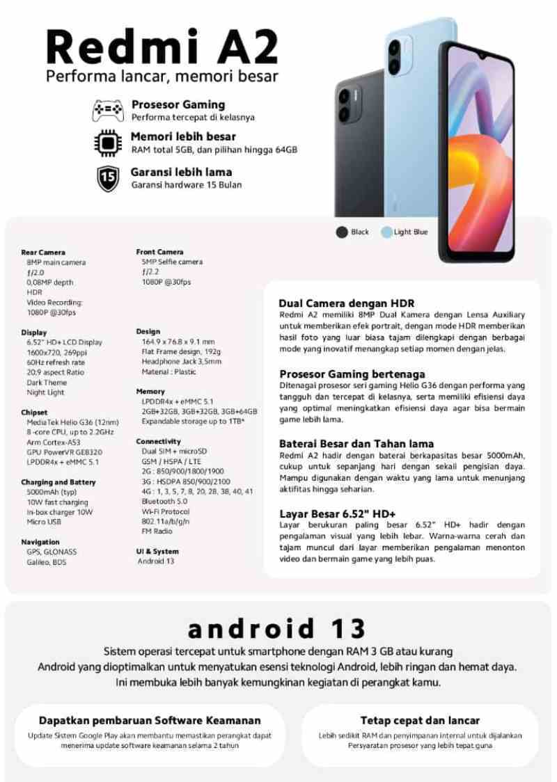 1 ulasan untuk Xiaomi Redmi A2 3/64GB